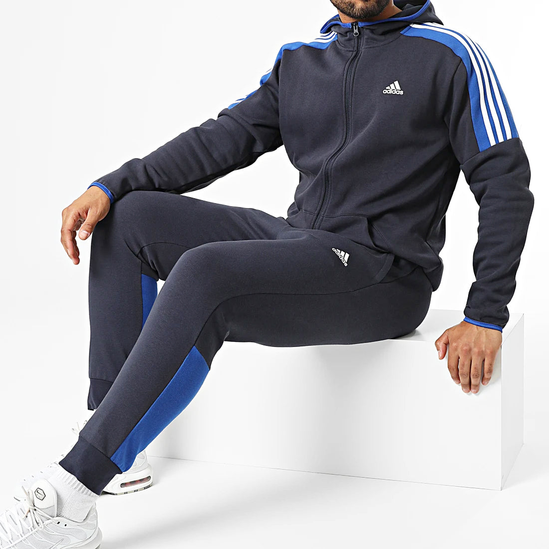 Het Adidas trainingspak 3 strepen MTS in het prachtige blauw is de perfecte keuze voor sporters en liefhebbers van stijlvolle en comfortabele kleding. Dit trainingspak is ontworpen om te voldoen aan de hoogste kwaliteitseisen van Adidas en biedt een uitstekende pasvorm, functionaliteit en duurzaamheid.