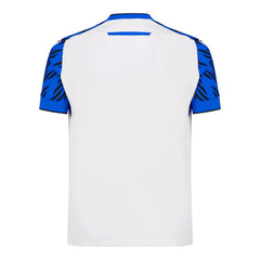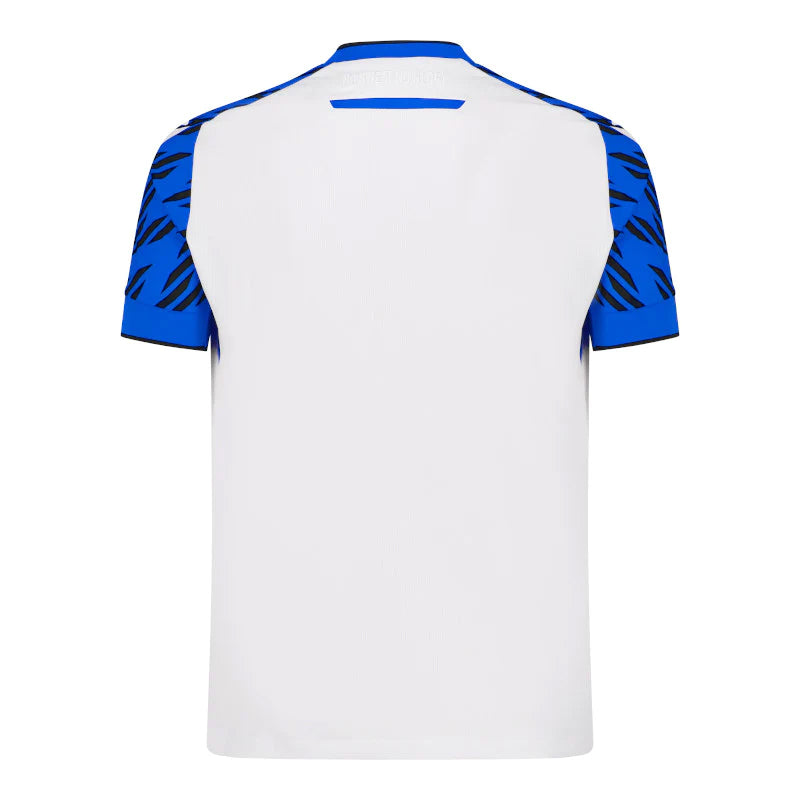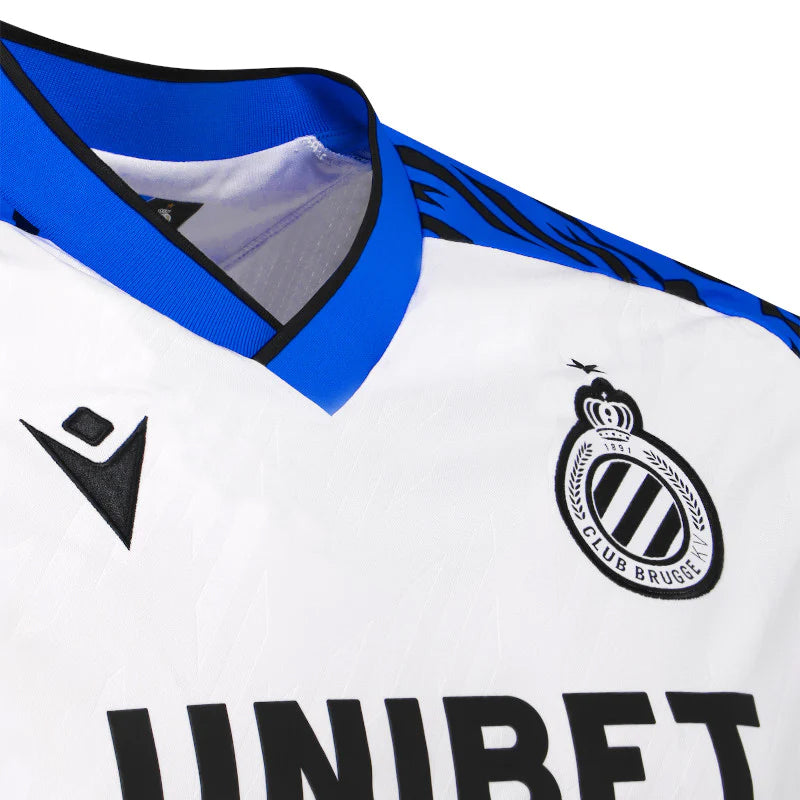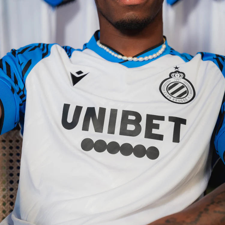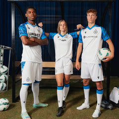 Zo is er de opvallende V-kraag zoals toen en zorgen de blauwe mouwen met zwarte accenten voor een extra touch én knipoog naar ons Blauw en Zwart. Bovendien komt het patroon van op de mouwen ook terug in het witte vlak én in de shorts om alles één geheel te maken. Het monotone logo werd ook uit de goede oude tijd geteleporteerd en onze No Sweat No Glory-slogan werd opnieuw in de nek verborgen. Op de achterkant van de sokkenprijkt 1891.