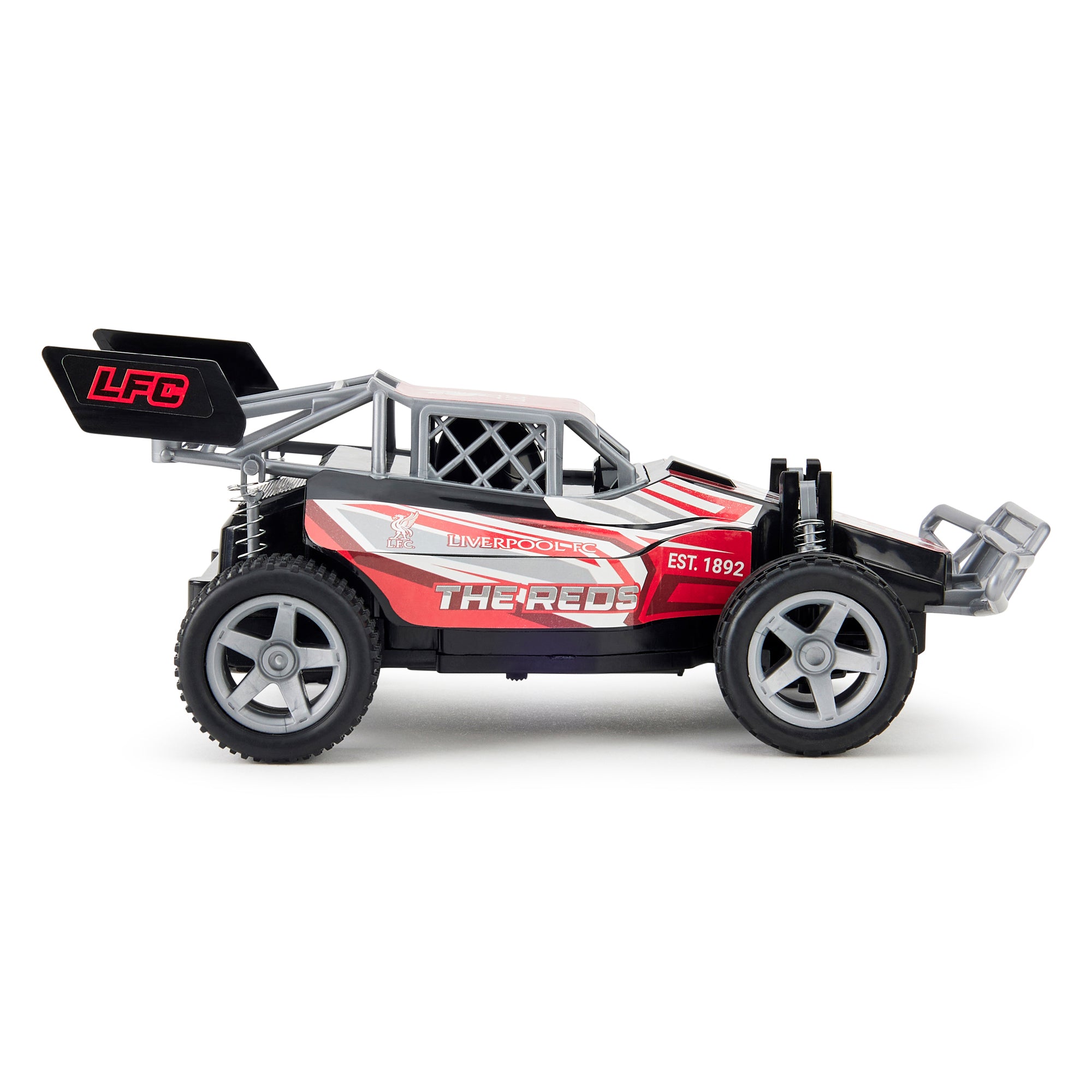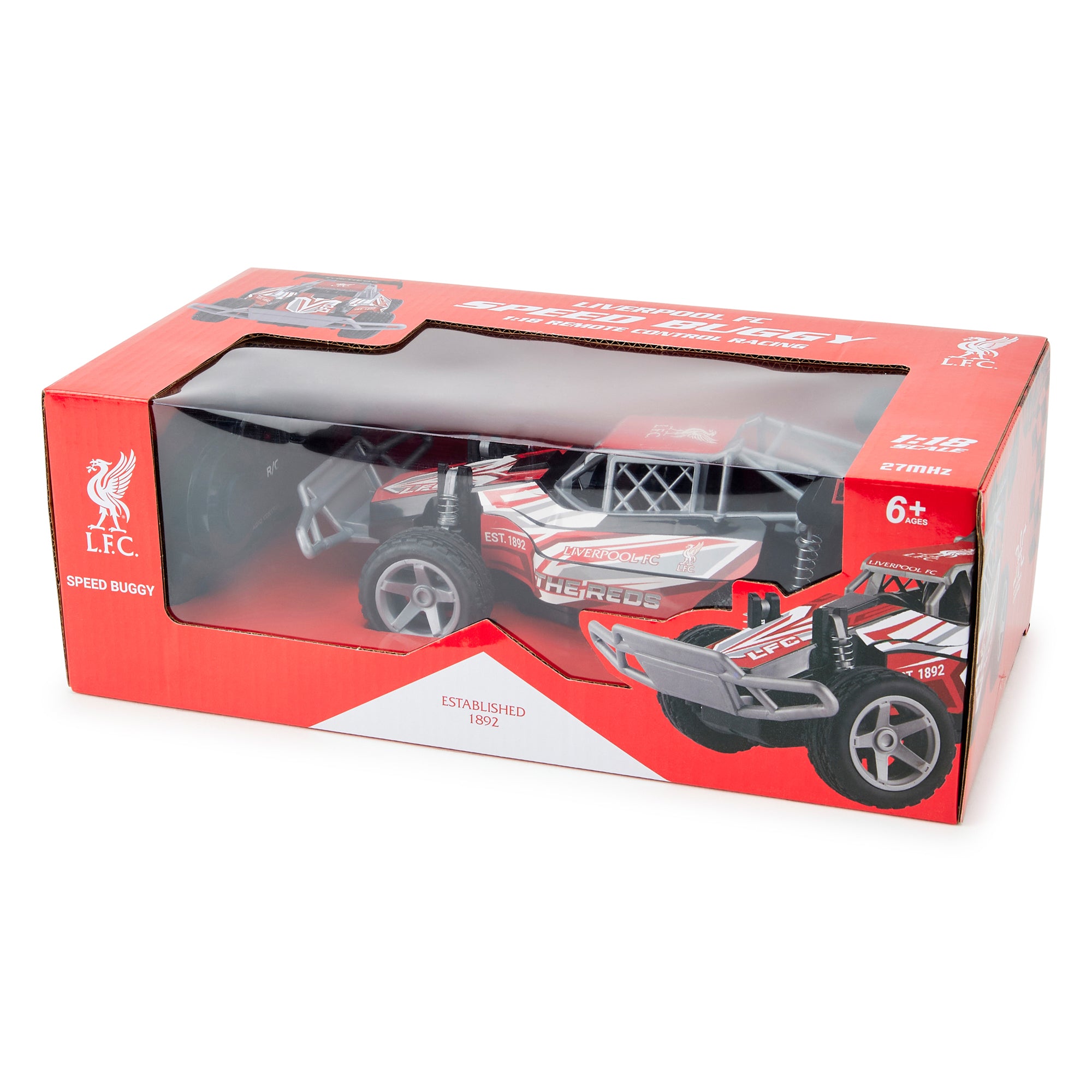 Duik in de wereld van snelheidsduivels met de Liverpool RC Speed Buggy 1:18, een betrouwbare, kleurrijke en lichtgewicht snelheidsbuggy die de passie van 'The Reds' op de weg brengt! Compleet met het Liverpool-logo en de opmerkelijke titel 'The Reds' aan beide zijden, is deze radiogestuurde auto een feest voor elke fan.